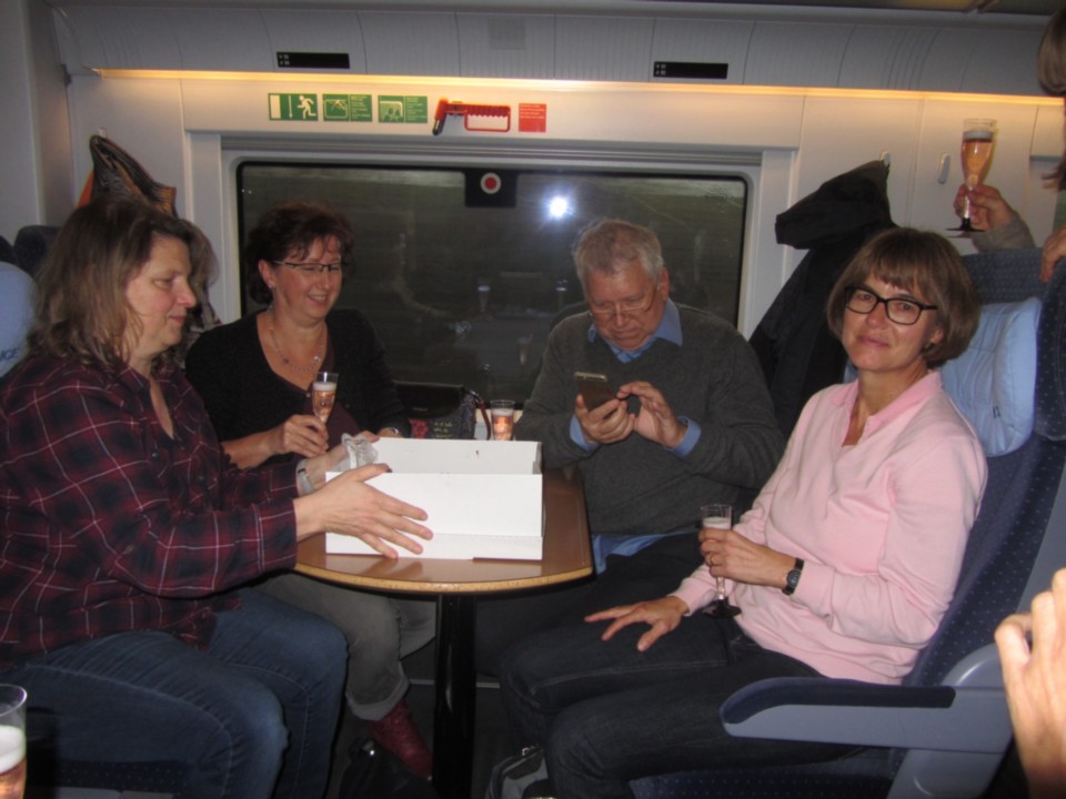 Am 11.11. ging es früh morgens mit dem ICE von München aus los und wir hatten abseits vom Praxisalltag die Möglichkeit miteinander zu ratschen, Karten zu spielen und bei Torte und Sekt auf das Jubiläum anzustoßen und uns auf das Wochenende einzustimmen.